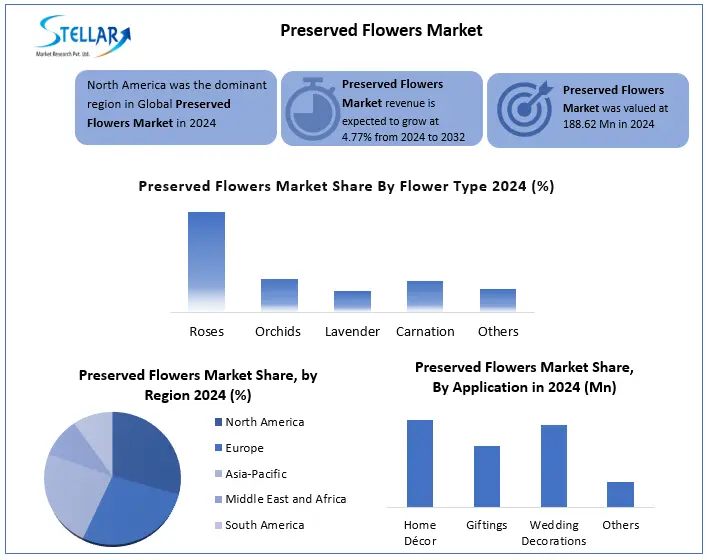 Preserved Flowers Market is blossoming as luxury floral décor, sustainable gifting, and low-maintenance roses, orchids, and designer arrangements reshape homes, weddings, and corporate interiors worldwide. Valued at USD 188.62 Mn in 2024 and projected to reach USD 261.36 Mn by 2032, the market thrives on e-commerce expansion, eco-friendly innovations like plant-based preservation and biodegradable packaging, and rising demand for sophisticated, long-lasting floral lifestyle solutions. Fierce competition from luxury brands, niche players, and artificial alternatives drives innovation, customization, and premium offerings, making preserved flowers a must-have in high-end interiors, gifting trends, and sustainable floral décor globally. Long-lasting floral décor and sustainable preserved flowers are becoming a global trend as eco-conscious consumers seek elegant, low-maintenance floral solutions.